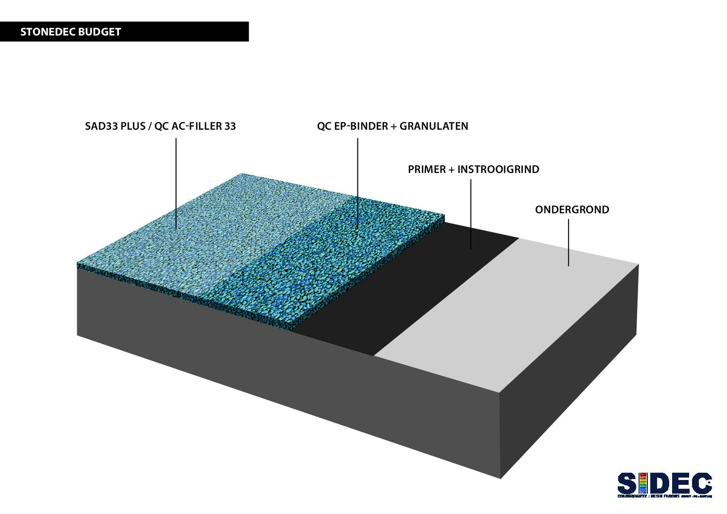 Deze vloer bestaat uit 4 lagen : primer – marmertapijt – porie-vuller – topcoat. De minimale inbouwhoogte van dit systeem is 8 mm. De primer dient gekozen te worden ifv het type ondergrond. Om het u gemakkelijk te maken hebben we onder downloads een document toegevoegd zodat u zelf heel eenvoudig kan zien welke primer voor u de meest geschikte is.