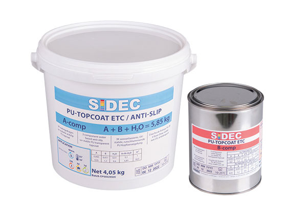 ETC in de benaming staat voor Easy To Clean : De belangrijkste eigenschap van de PU-TOPCOAT ETC / ANTI-SLIP is dat er bijna niets op hecht waardoor het reinigen ook super makkelijk wordt. Dat maakt deze coating bovendien ook bestand tegen weekmakers die uitlogen uit autobanden en andere voorwerpen van rubber.