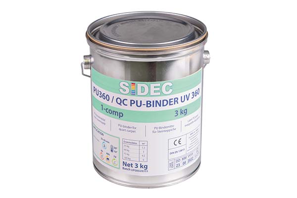1 component oplosmiddelvrij, aliphatisch PU bindmiddel voor steentapijt, met een verlengde potlife. Kan zowel binnen als buiten gebruikt worden. 100% uv-bestendig, zodat er geen verkleuring door UV-licht plaats vindt. Aanbevolen verwerkingstemperatuur tussen 15°C en 30°C.